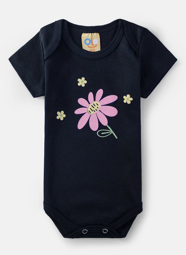 O modelo conta com mangas curtas, transpasse nos ombros e botões de pressão nas entrepernas, que facilitam na hora de vestir e trocar. A estampa frontal traz uma margarida em destaque acompanhada de outras flores, criando um visual alegre e encantador.