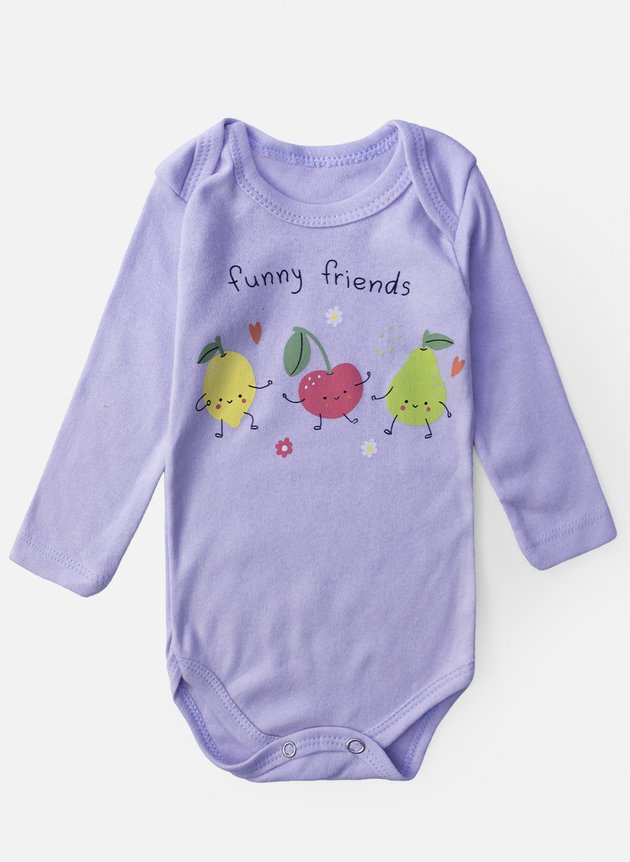 Leve, prático e cheio de alegria, o Body Bebê Manga Longa "Funny Friends" é ideal para os dias cheios de descobertas.