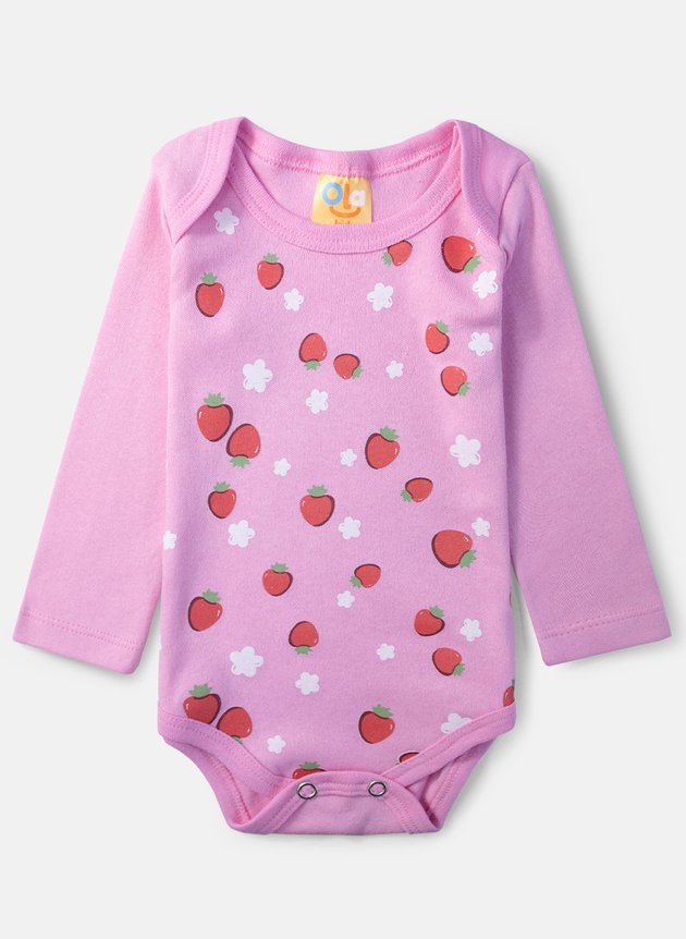Delicado e cheio de charme, o Body Bebê Manga Longa "Moranguinhos" é perfeito para acompanhar os primeiros momentos da sua pequena com conforto e alegria.
