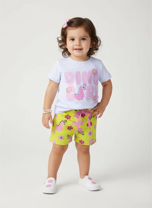 Perfeito para passeios, escola e momentos de lazer, o Conjunto Dino Girl oferece conforto, praticidade e um visual lúdico que as meninas vão amar.