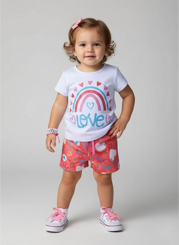 Ideal para passeios, escola e momentos de lazer, o Conjunto Love oferece conforto, praticidade e um toque de brilho, garantindo um visual alegre que as meninas vão amar.