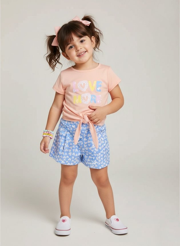Ideal para dias cheios de brincadeiras ou passeios em família, este conjunto promete acompanhar as pequenas com estilo e muita fofura!