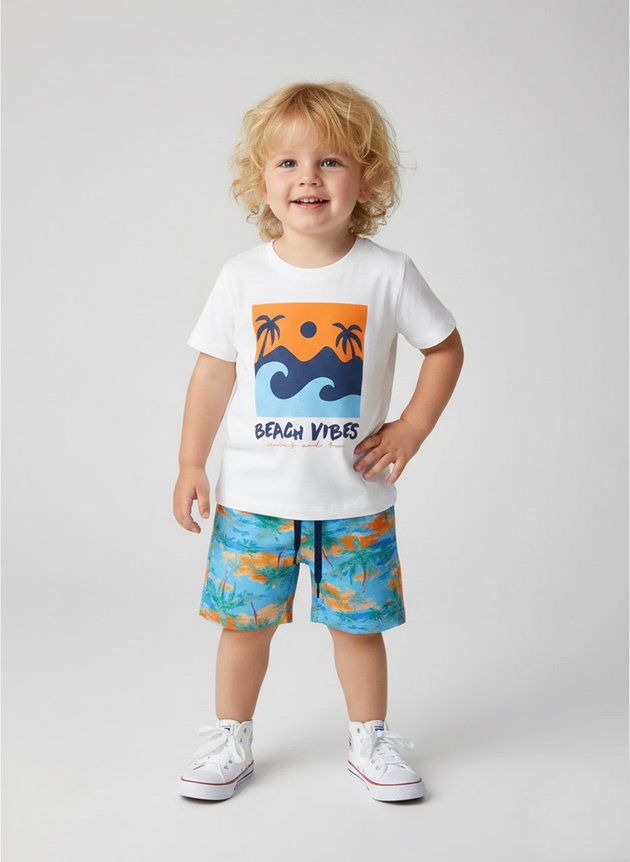 O Conjunto Bebê Menino trás o espírito do verão e das férias para o dia a dia dos pequenos!