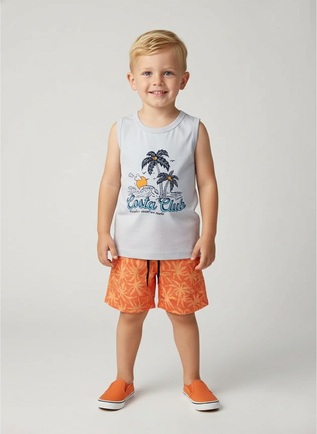 Um conjunto pensado para meninos que adoram aproveitar o verão com estilo e liberdade!