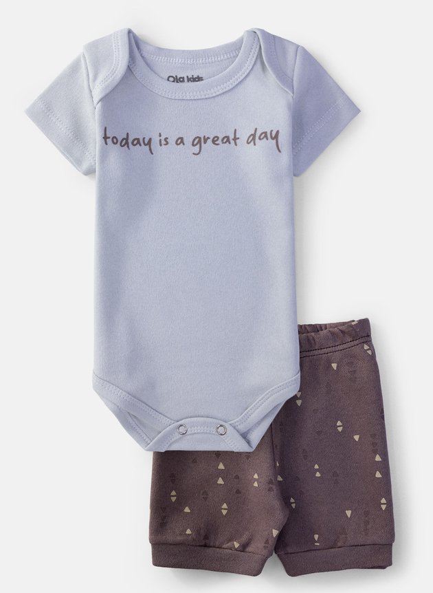 O Conjunto Body Bebê Manga Curta "Today Is A Great Day" traz praticidade, conforto e muito charme para os pequenos.