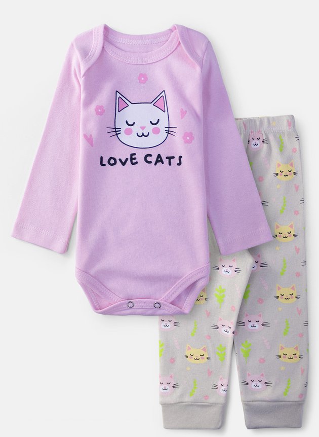 O Conjunto Body Bebê Manga Longa Love Cats é ideal para proporcionar conforto, praticidade e estilo ao bebê em todas as ocasiões.