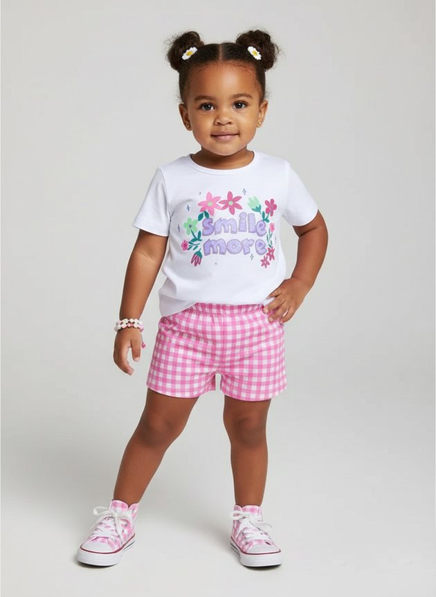 O Conjunto Infantil Feminino Smile More é ideal para passeios, momentos de lazer ou o dia a dia.