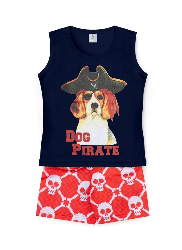Conjunto composto por duas peças. Regata com estampa frontal e decote redondo. Bermuda de tactel estampada sem forro com elástico interno na cintura. Excelente caimento.