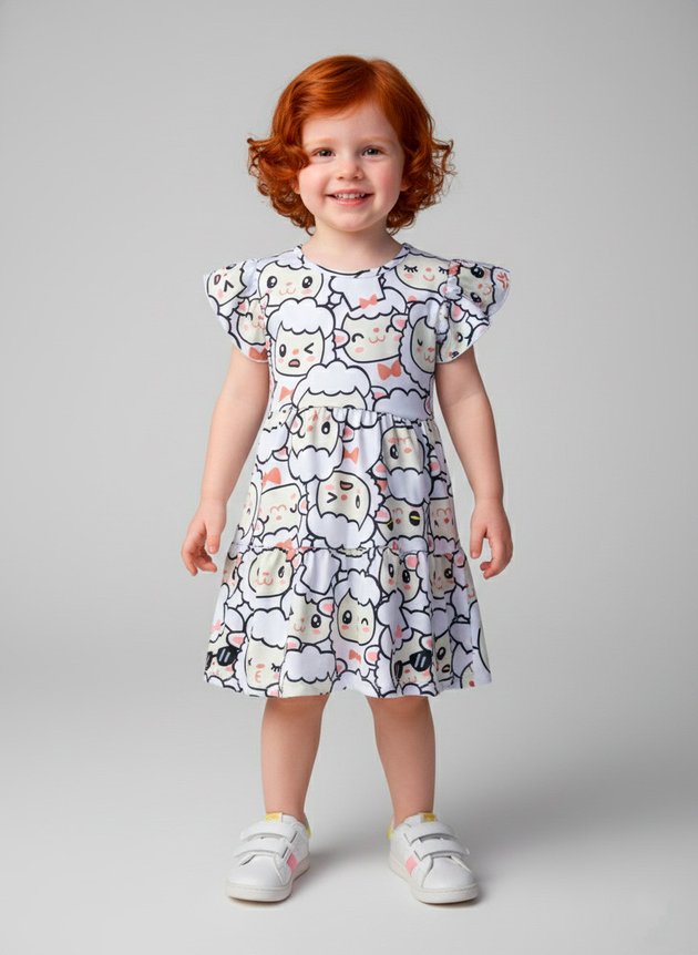 O Vestido Bebê Manga Curta "Ovelhas", uma peça feita para trazer conforto e charme ao dia a dia das pequenas.